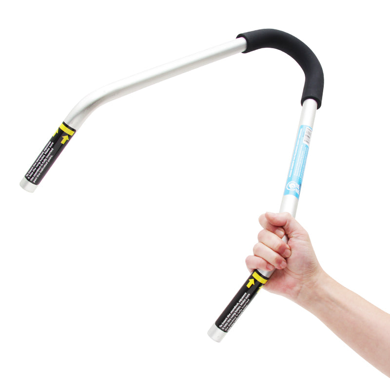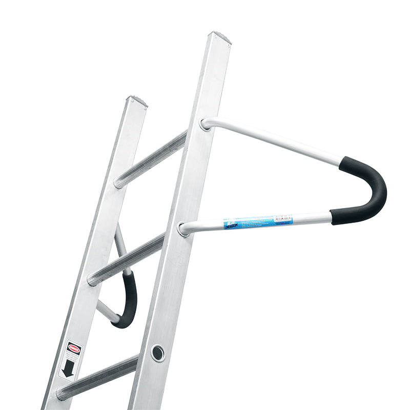 Blue Dragon Ladder Standoff with heavy duty non-marking bumpers fits most aluminum ladders. It’s lightweight and extends 12 inches beyond the ladder, making it ideal for working around windows and other obstacles. Made from ultra-lightweight aluminum with silicone resting points, it protects surfaces from damage. Installation is fast and tool-free—press the bracket ends inward, slide them into ladder rungs (1" openings or larger), and release for a secure fit and added stability.